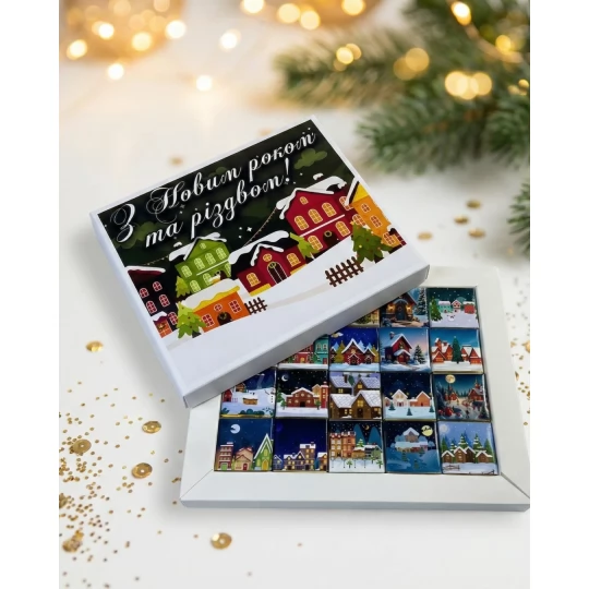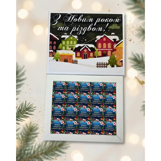 Подарунковий набір шоколадок З Новим роком та Різдвом (чорний шоколад)