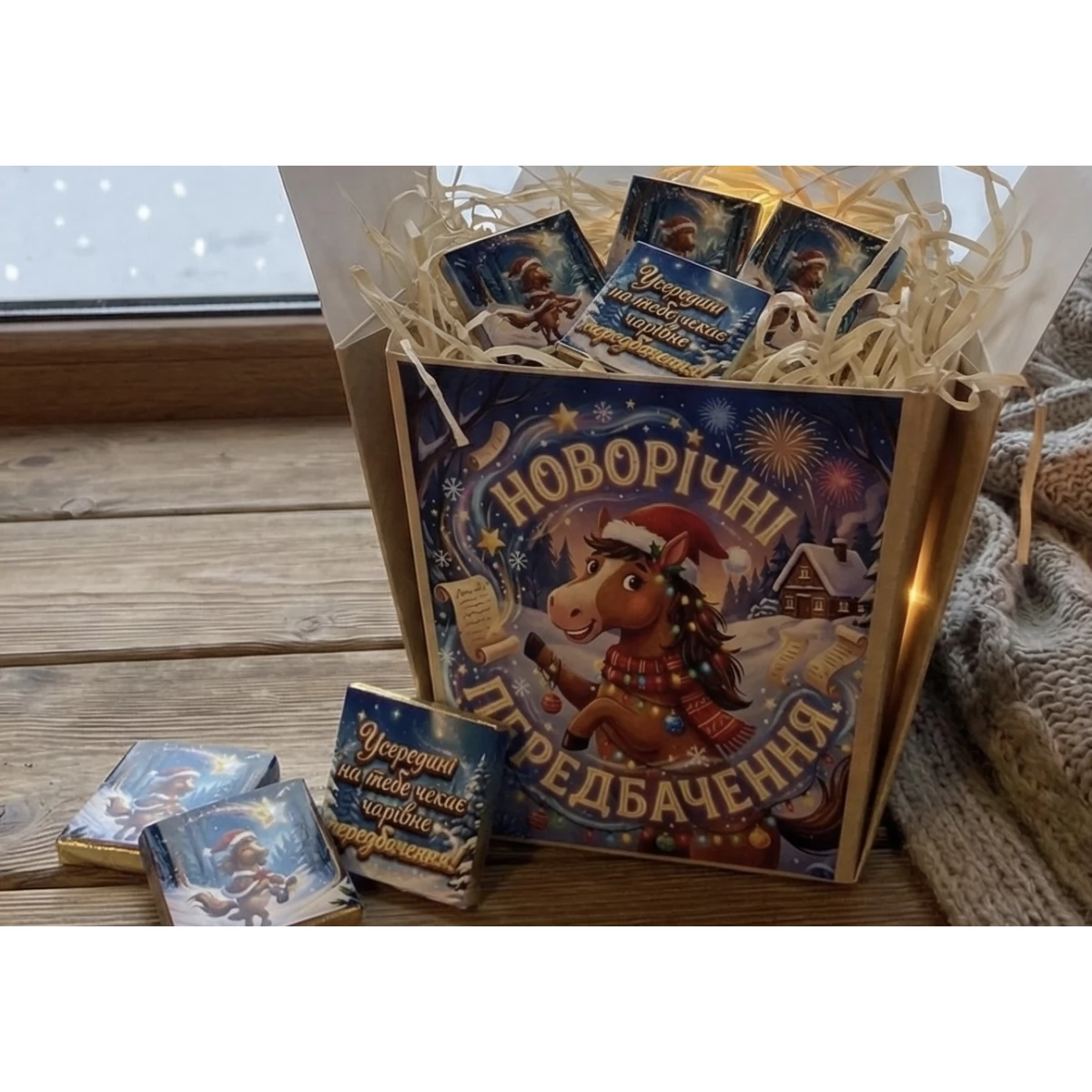 Подарунковий шокобокс Новорічні передбачення Крафт (молочний шоколад)