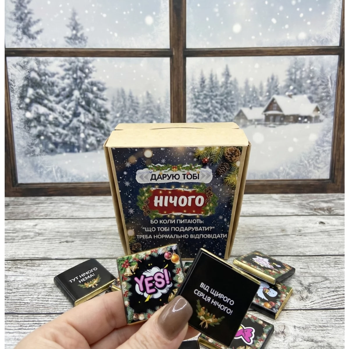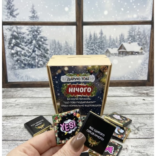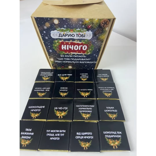 Шокобокс гумористичний Новорічний Нічого Крафт (чорний шоколад)