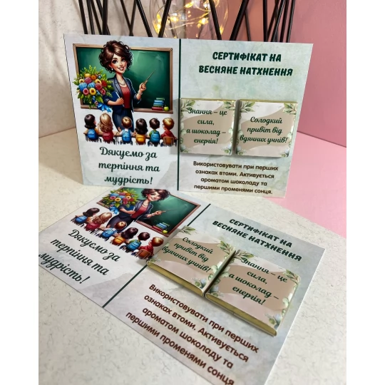 Листівка з шоколадкою на 8 березня Сертифікат на весняне натхнення