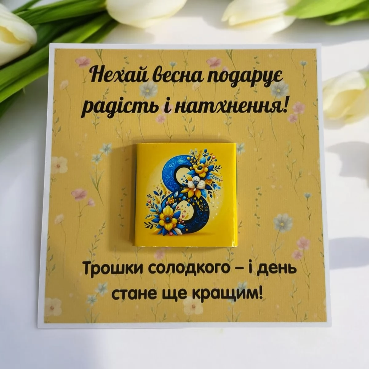 Листівка з шоколадкою на 8 березня жовта (10 на 10 см)